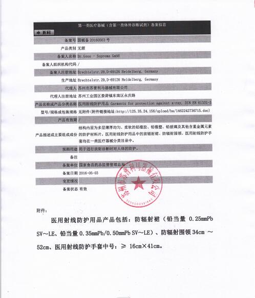 蘇州市蘇普利馬器械有限公司是專業(yè)從事醫(yī)用X射線防護系列用品、裝置、代理德國Dr.Goos-Suprema Gmbh.顧斯博士-蘇普利馬有限公司生產(chǎn)的原裝進口鉛衣及醫(yī)用觀片燈的生產(chǎn)銷售企業(yè).生產(chǎn)的X射線防護圍裙均來自美國SHIELDING公司的最新型超薄型防護材料,,具有防護性能可靠、穿戴舒適、輕便柔軟、操作自如等諸多優(yōu)點.產(chǎn)品均通過相關(guān)X射線檢測機構(gòu)的檢測,達到產(chǎn)品標準的要求.X射線醫(yī)用膠片觀察燈。是采用全LFD燈光技術(shù)。具有重量輕,光源均勻,亮度高,無頻閃,不變型,使用壽命長等特點。均取得了生產(chǎn)許可及醫(yī)查看更多>>